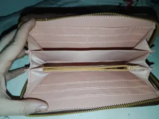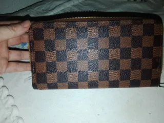 Elegante cartera para mujer con un diseño clásico de cuadros marrones y negros. Perfecta para organizar tus esenciales. - Estampado de cuadros. - Cierre de cremallera.
