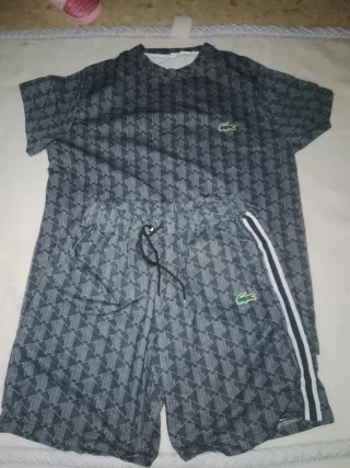 Conjunto deportivo de camiseta y pantalón corto con estampado geométrico. - Camiseta de manga corta. - Pantalón corto con cordón. - en ambas prendas. - Raya lateral en el pantalón.