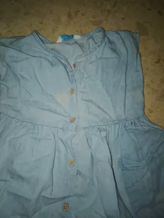 Peto vaquero de tela resistente, ideal para el día a día. - Talla 5-6 años. - Diseño con peto y tirantes. - Bolsillos delanteros. - Botones en la parte frontal. - Bajo deshilachado.