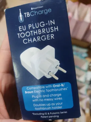 Cargador de enchufe europeo para cepillos de dientes eléctricos Oral-B/Braun. - Compatible con Oral-B/Braun Electric Toothbrushes. - Enchufa y carga sin cables. - Sirve como soporte para el cepillo. - Excluye series iO & Pulsonic. - Patente pendiente.