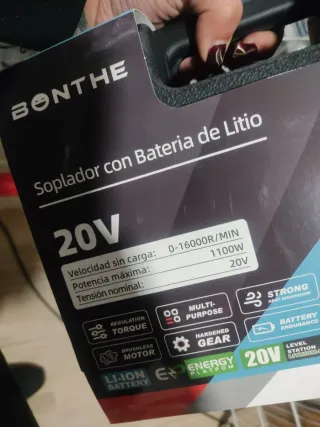 Soplador eléctrico de litio con motor brushless industrial. - Voltaje: 20V - Velocidad sin carga: 0-16000 RPM - Potencia máxima: 1100W - Regulación de torque - Engranaje endurecido