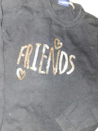 Jersey negro de manga larga con el mensaje Friends decorado con lentejuelas. - Talla: 5-6 años. - Diseño con lentejuelas. - Cuello redondo.