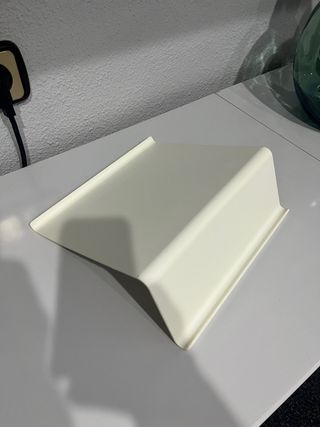 Práctico soporte de mesa en color blanco. Su diseño curvo y minimalista lo hace ideal para cualquier espacio. - Material: Plástico. - Color: Blanco.