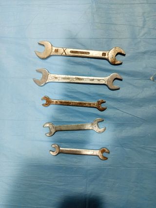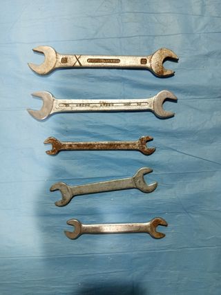 Juego de cinco llaves fijas usadas. Ideales para mecánica. - Son de diferentes tamaños. - Algunas muestran señales de uso.