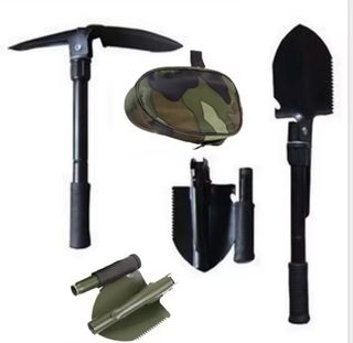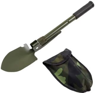 Pala multiusos plegable, ideal para acampada o senderismo. Resistente y fácil de transportar gracias a su diseño plegable. - Material metálico resistente. - Diseño plegable para fácil transporte. - Incluye funda de camuflaje.
