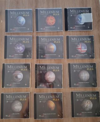 Colección completa de la Gran Biblioteca Multimedia Millennium Plus. 12 CDs en buen estado, con sus carátulas en perfecto estado. - Incluye 12 CDs-ROM de la enciclopedia Millennium Plus. - Temas variados: Internet, Ciencia y Tecnología, Inglés, Diccionario Inglés-Español... Uno de los CD's la caja está rota las demás están sin abrir