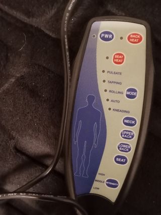 Respaldo de masaje multifunción en color negro comprado por 65. - Acolchado suave. - Incluye mando de control. - Cable de alimentación.