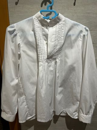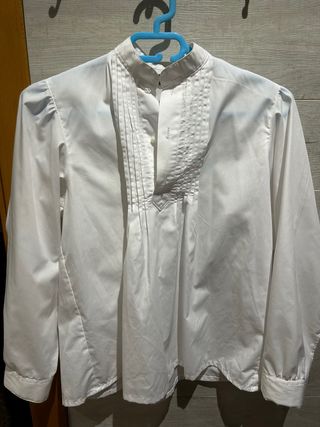 Camisa blanca de manga larga de Confecciones Llorca ,varias tallas 10,12 y 14 - Tejido de fácil planchado. - Cuello mao. - Manga larga. - Plisados decorativos en la parte frontal. -Confecciones Llorca