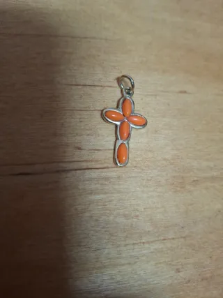 Bonito colgante con forma de cruz adornado con piedras de coral. - Diseño de cruz. - Piedras de color coral.
