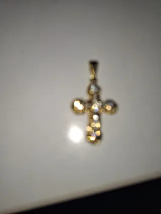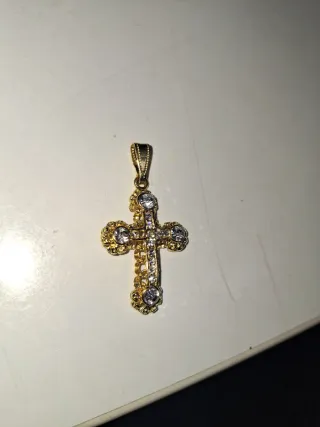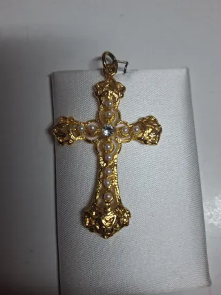 Cruz dorada con perlas y cristal