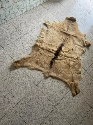 Piel de cabra curtida, ideal para decoración o manualidades. - Textura suave y natural. - Tonos marrones y beige. - Forma irregular.