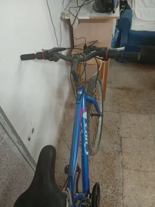 Bicicleta de montaña en color azul con detalles en morado y rosa. En buen estado en general - Ruedas de 26 pulgadas. - Cambios y manetas nuevas