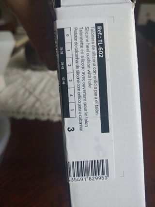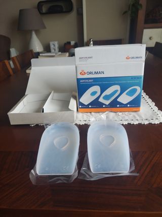 Taloneras de silicona para espolón, solo se han probado. Me costaron en ortopedia 23 euros, para talla 43-46