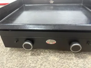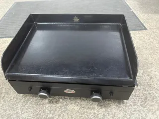 Plancha de cocina negra con dos quemadores y control de temperatura. - Superficie de cocción amplia. - Bandeja recogegrasas. - Encendido electrónico.