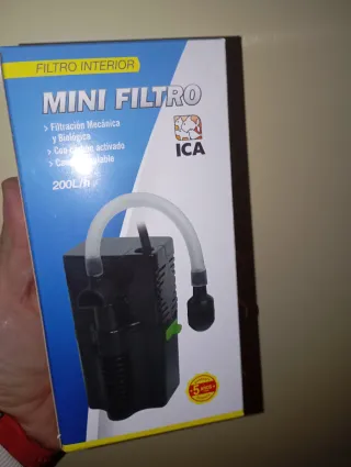 Mini filtro interior para acuarios de la marca ICA. - Filtración mecánica y biológica. - Con carbón activado. - Caudal: 200 L/h. - Nuevo, sin utilizar.