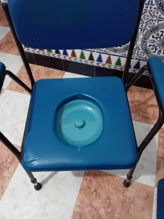 Silla orinal con asiento acolchado y reposabrazos. - Altura regulable. - Incluye cubeta. - Estructura metálica.