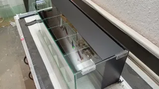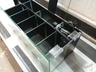 Filtro de acuario de cristal con divisiones y bomba incluida. - Construcción en cristal. - Múltiples compartimentos para filtración. - Bomba de agua integrada.