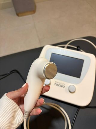 Equipo de ultrasonido Physio Tecno con pantalla y dos mandos. - Diseño moderno en color blanco y gris. - Pantalla digital. - Dos mandos giratorios para ajuste. Frecuencia 1MHz / 3MHz Intensidad máxima 3W/cm2 Modo de trabajo Continuo / Pulsado Frecuencia 16Hz/48Hz/100Hz Factor de trabajo de pulso 10-90%, escalonamiento 10% RBN <8.0 Cabezal de ultrasonidos 5cm2 (1cm2 / 2cm2 como opción) Dimensión 290×240×130mm (dispositivo)