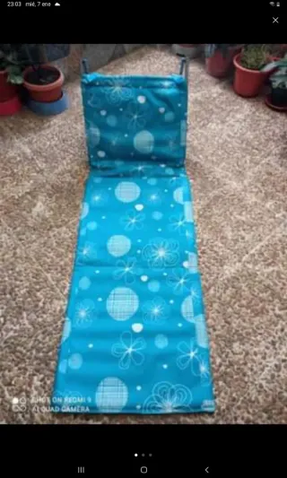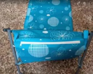 Hamaca de tela azul con un divertido estampado de flores y círculos blancos. Es ligera y fácil de transportar. - Diseño floral blanco. - Color azul vibrante.