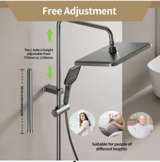 4 modos de agua en 1: Rociador superior, ducha de mano, salida inferior para bañera y chorro a presión, seleccionables fácilmente desde el panel de botones estilo piano. Altura regulable: Ajustable de 77 a 145 cm, con extensión adicional para mayor comodidad de todos los usuarios. Pantalla de temperatura en tiempo real: Control preciso del agua para una ducha más segura, ideal para niños y personas mayores. Iluminación ambiental integrada: Luz suave y discreta que transforma la ducha en un espacio relajante. Bloqueo de temperatura: Mantiene tu ajuste preferido. PVP recomendado en Tienda: 196€