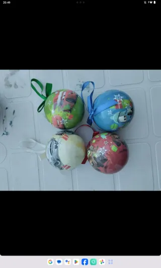 Conjunto de cuatro bolas decorativas con temática de Cars. - Diseño de personajes de Cars. - Ideal para adornos navideños o decoración. - Cada bola incluye una cinta para colgar.