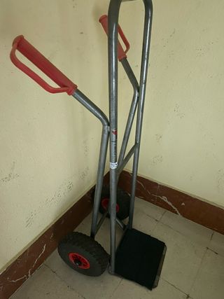 Carro de carga metálico con ruedas grandes y mangos ergonómicos. - Estructura de metal resistente. - Ruedas todoterreno para mayor estabilidad. - Mangos de goma para un agarre cómodo. - Plataforma de carga. - Diseño plegable para fácil almacenamiento.