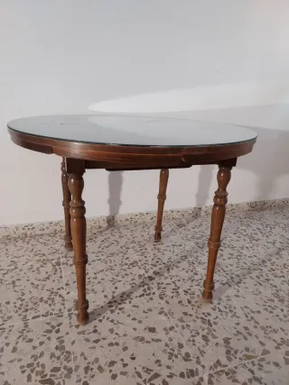 Mesa redonda madera y cristal estensible