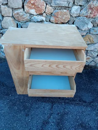 Cajonera de madera con 4 cajones, 64 x 59 d fondo x 99 d alta,SE LE PUEDE CORTAR LA ESCUADRA Q PEGABA AUN PILAR Y DEJARLA CUADRADA.