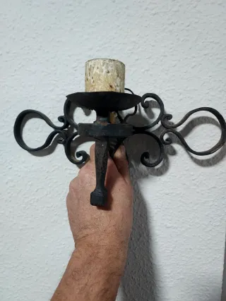 Aplique de pared de forja, Ideal para dar un toque rústico a cualquier estancia. Solo pintar y poner bombilla imitación vela. - Fabricado en hierro forjado.