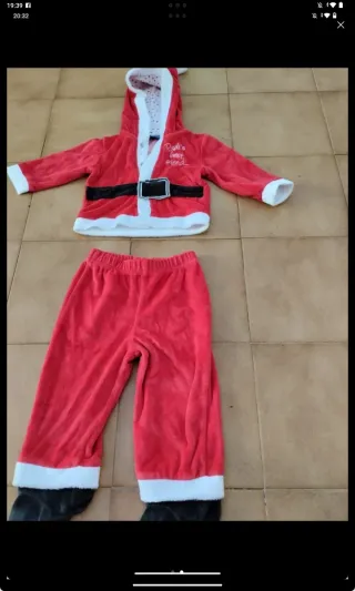 Conjunto de Papá Noel para bebé. En muy buen estado. - Talla 3/6 meses. - Incluye chaqueta con capucha y pantalón. - Material suave y cálido.