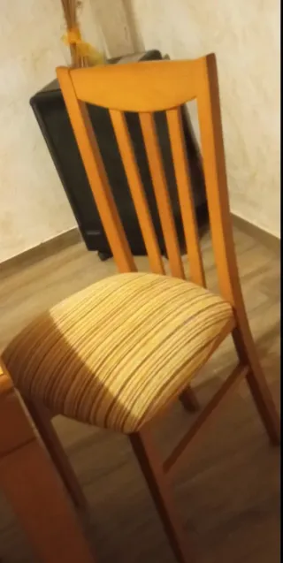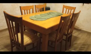 Se vende mesa extensible de 40cm a 50cm con 6 sillas a juego esta como nuevo muy cuidado medida 1.30 de largo y 84 cm de ancho y 75cm de alto