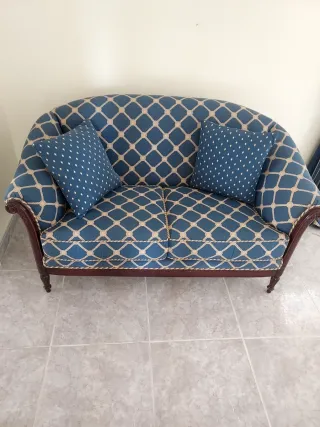Sofá de 2 plazas azul con cojines IMPECABLE