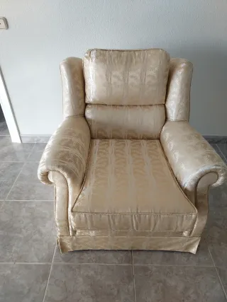 Sillón individual beige con estampado," COMO NUEVO