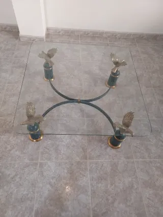 Mesa de forja con cristal y águilas en las patas,