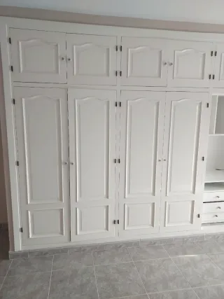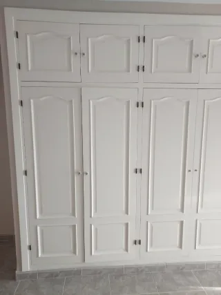 Hojas de armario color blanco, con puertas de diseño. Medidas: 10 hojas d armarios d 1"76 x 53 y 10 d 50 alto x 53. Total: 50 eur todas. - Diseño de puertas con molduras. - Tiradores plateados. - Acabado en blanco mate.