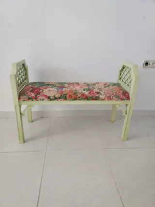 Banqueta tapizada floral verde Medidas: 45 x 68 cm