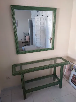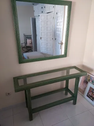 Mesa consola verde con espejo