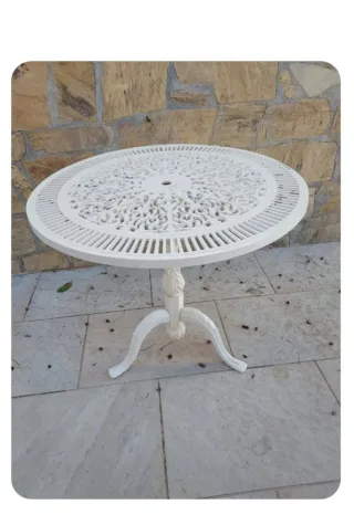 Mesa de jardín blanca redonda con sus 2 sillas