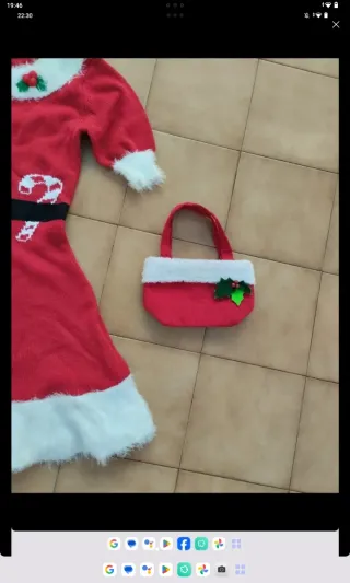 Conjunto de Mamá Noel de Primark en talla XS. - Vestido rojo con detalles blancos. - Gorro a juego. - Bolso pequeño a juego.