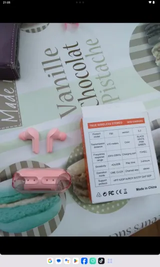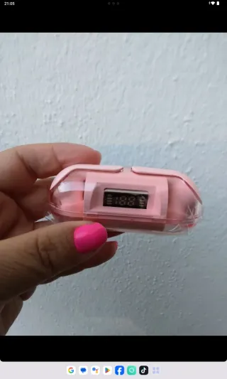 Auriculares inalámbricos en color rosa con pantalla digital. - Diseño moderno y compacto. - Ideales para escuchar música o realizar llamadas.