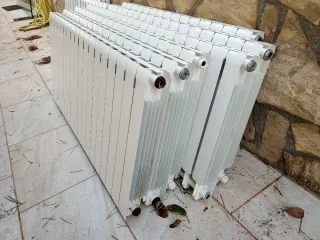 Conjunto de radiadores de aluminio en color blanco. Son ideales para sistemas de calefacción. 20 euros cada uno. Radiadores diferentes tamaños,varios d 58 x 1"44 cm IMPECABLES. - Diseño moderno y elegante. - Material de alta calidad. - Acabado liso.