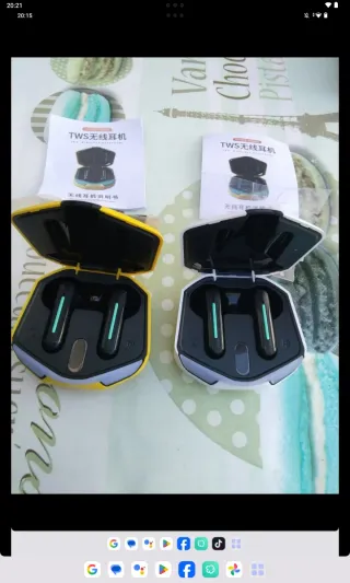 Auriculares inalámbricos Y9 con tecnología TWS. - Diseño moderno en color amarillo y blanco. - Incluye estuche de carga. - Manual de instrucciones en chino.