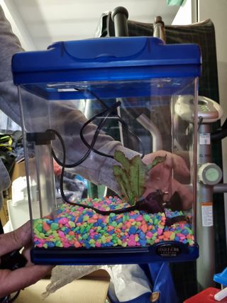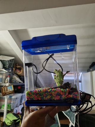 Acuario hailea con luz y piedritas y planta decorativa. Regalo Red y acuarios de transporte o auxiliares. 20€ si quieres el termo aquecedor Vulcan
