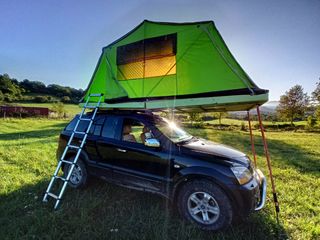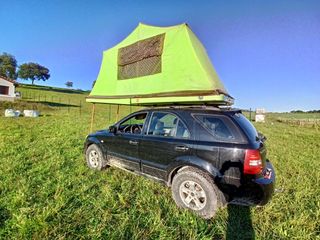 Tienda de techo para cuatro personas, dos camas de 135x190. Era un carro tienda adaptado para poner en el techo. Perfecta para furgoneta grande o 4x4.