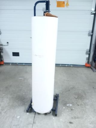 Portabobinas vertical para facilitar el manejo de rollos. Incluye rollo de papel. - Estructura metálica resistente. - Ruedas para movilidad.