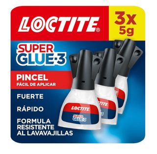 Pack de 3 unidades de Loctite Super Glue-3 con aplicador en pincel. - Fórmula resistente al lavavajillas. - Secado rápido y fuerte adhesión. - Fácil de aplicar.