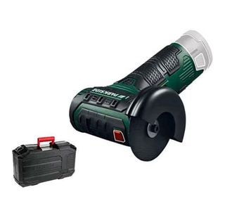 Mini amoladora angular Parkside, ideal para trabajos de corte y desbaste. Incluye su maletín de transporte. - Diseño ergonómico. - Protector de disco. - Mango auxiliar.