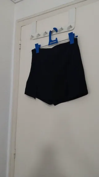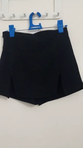 Falda pantalón de color negro. Presenta un diseño moderno y versátil. - Cintura alta. - Aberturas laterales.