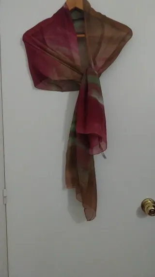Pañuelo con un diseño estampado y colores vibrantes. - Diseño con franjas y degradados. - Tonos marrones, rojos y verdes.