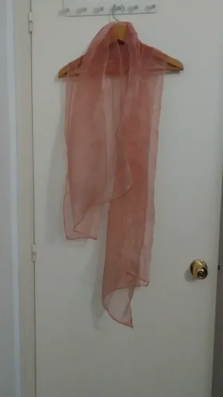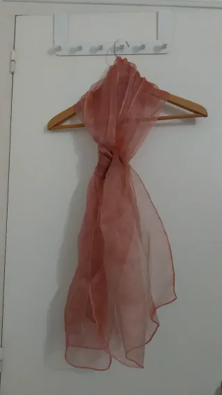 Elegante pañuelo fino de tela translúcida. - Color salmón. - Tacto suave y ligero. - Ideal para complementar atuendos.